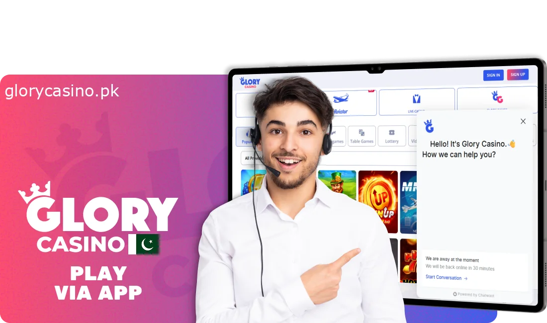 All registered players have many options for contacting the Glory Casino support team. Helpful customer service agents, fluent in Pakistani, are available to answer any questions you may have concerning the site, mobile app, and any aspect of the gambling experience. This includes how to make a deposit, request a withdrawal, or claim the 62,000 PKR bonus.